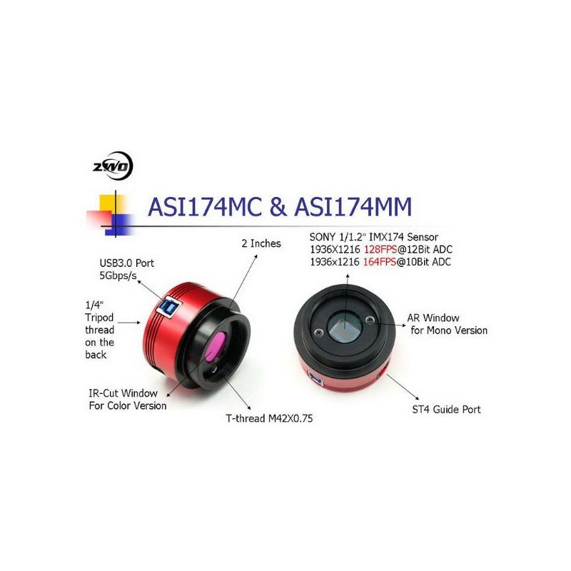 La caméra fournit 128 images par seconde en pleine résolution (1936x1216 pixels) en utilisant l'USB 3.0. Elle est idéale pour des enregistrements de la Lune et des planètes - également pour le soleil avec un filtre adapté. Vous pouvez également utiliser cette caméra pour des pauses de quinze minutes pour capturer des objets peu lumuneux.