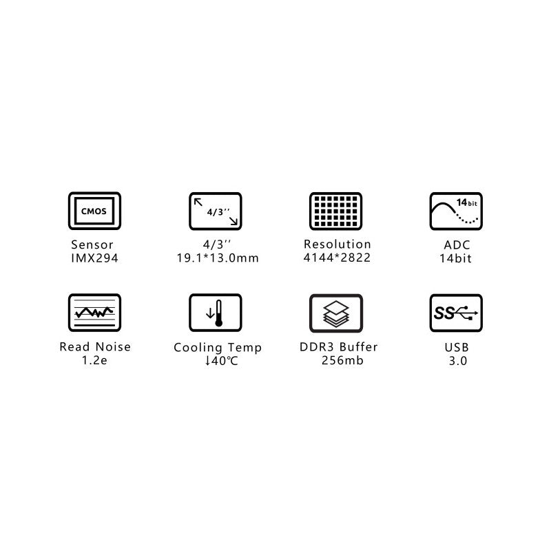 Les caméras équipées d'un capteur IMX 294 en version couleur sont parfaitement adaptées aux prises de vues du ciel profond en RGB. Par contre, l'usage de filtres H-Alpha avec ce capteur couleur cause l'apparition d'artefacts très difficiles à éliminer au traitement. Cette caméra n'est donc pas adaptée à l'astrophotographie avec des filtres H-Alpha à bande étroite, ou des filtres à bandes étroites multiples (Triad...etc.)