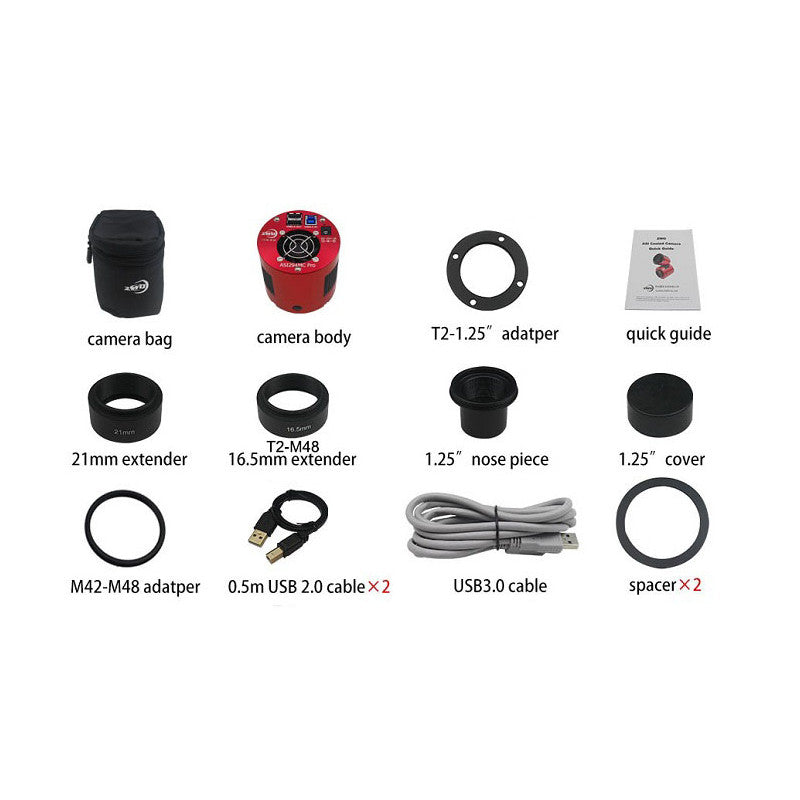 Les caméras ASI Pro sont équipées d'une mémoire tampon DDR3 de 512 Mo, qui garantit un transfert de données fiable. De plus, la mémoire tampon réduit la surchauffe de l'amplificateur (Amp-Glow), qui peut se produire lors du transfert de données lent avec USB 2.0.