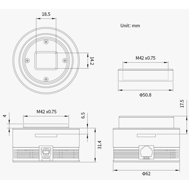 Le filtre en verre transparent empêche la poussière de pénétrer dans le capteur. Il laisse également passer les rayons UV et infrarouges, ce qui vous permet de réaliser des photographies infrarouges avec la caméra. Le faible bruit et le circuit anti-ampglow rendent cette caméra non refroidie intéressante pour l'enregistrement d'objets du ciel profond, tels que les nébuleuses peu lumineuses, les amas d'étoiles et les galaxies.