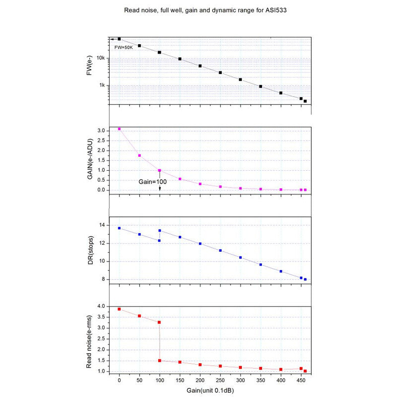 L'une des caractéristiques remarquables de l'ASI 533MM Pro est sa sensibilité à la lumière exceptionnelle. Le QE de 80 % grâce à la technologie BACK ILLUMINATION et le très faible bruit de l'amplificateur rendent cette caméra idéale pour toutes les applications astronomiques, mais surtout pour l'astrophotographie du ciel profond.